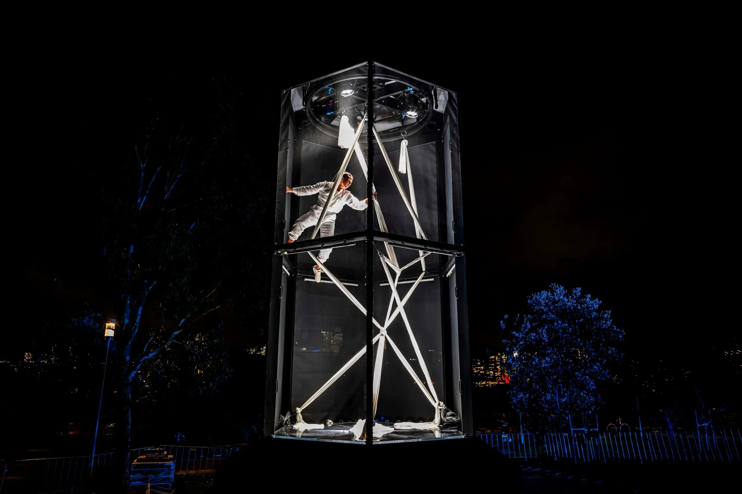 Performed within a monumental, 6-metre apparatus which can be viewed from all sides, ENDLING is a unique fusion of popular art forms, seamlessly integrating a solo aerial performance and eye-catching 360-degree video art, with lighting, sound and music. It’s a work which invites reflection on our relationship with the world and our collective legacy, asking: can we truly change our fate, or will we be the architects of our own extinction?
